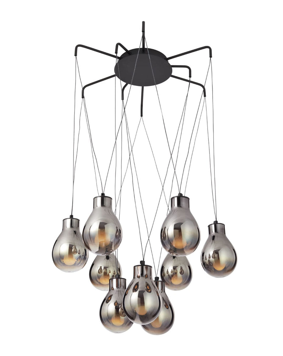 The suggestions that the rain provokes also change the vision of the world that surrounds us, falling from the sky and making every place evocative. Just like the rain that falls lightly and diligently, the elements of these lamps redesign the environment with constant interlacing of oblique threads to form a weave of shiny mirrored glass bulbs.