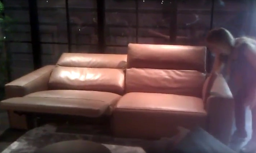 The Beverly Reclining Sofa combines the best of all features - stylish looks, comfort, quality materials, and multiple recline mechanisms. The Beverly Reclining Sofa's minimalist styling and exceptional comfort create a highly aesthetic piece suited to all interiors. The two adjustable headrests and two extending footrests are operated by independent motors by touching discretely hidden buttons on the sides of the seat cushions. The sumptuous comfort of the Beverly Reclining sofa is enhanced by the down filled cushions on the seat, back and armrests. Adding to the ergonomic excellence of this model is an adjustment which allows the footrest to be elevated above the torso to improve circulation.