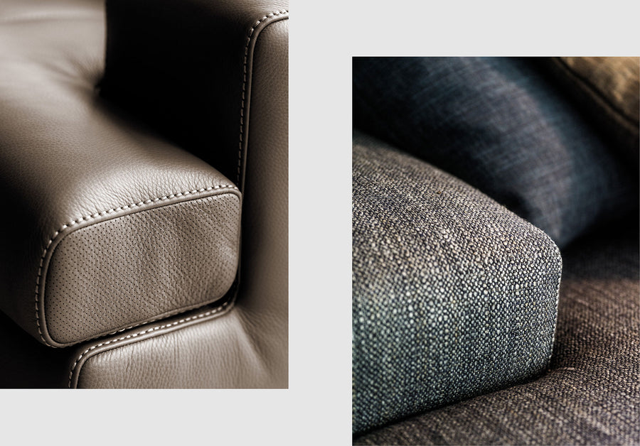 The upholstery features artisanal stitching with pilholes which improve the comfort by allowing the cushions to breathe.