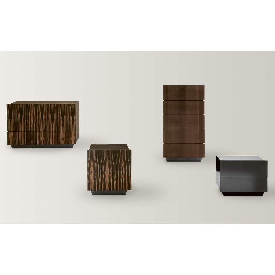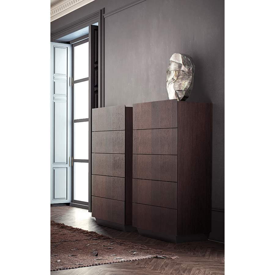 Sturdy volumes and textured contrasts convey solid, appealing beauty. The drawers are punctuated by large, projecting fronts. The 45° inclination of these panels makes it easy to open each single drawer, revealing an interior finish that can match or contrast with the outside.
