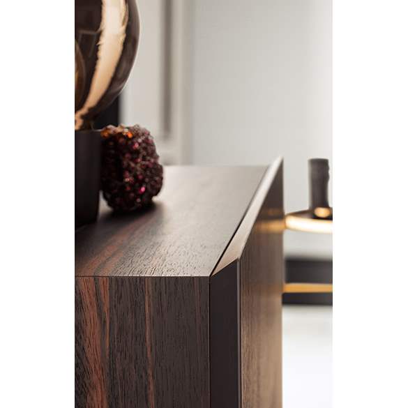 The range of available finishes is really extensive and includes exotic rosewood and ebony. The base is available in gold, bronze or titanium as well as in the gloss and matte lacquer colors of the Pianca collection. Tall and tapered, the base supports the structure and complements the overall design with its bold and distinctive character.