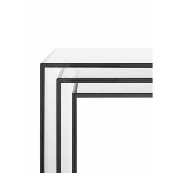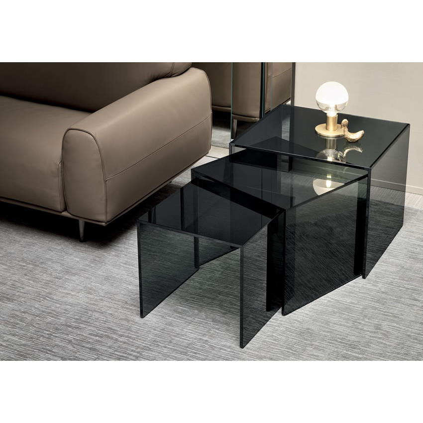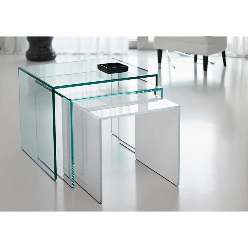 Different sized tables that can be used to form a nest.Available in transparent, extraclear or white lacquered glass. Thickness 12 mm.