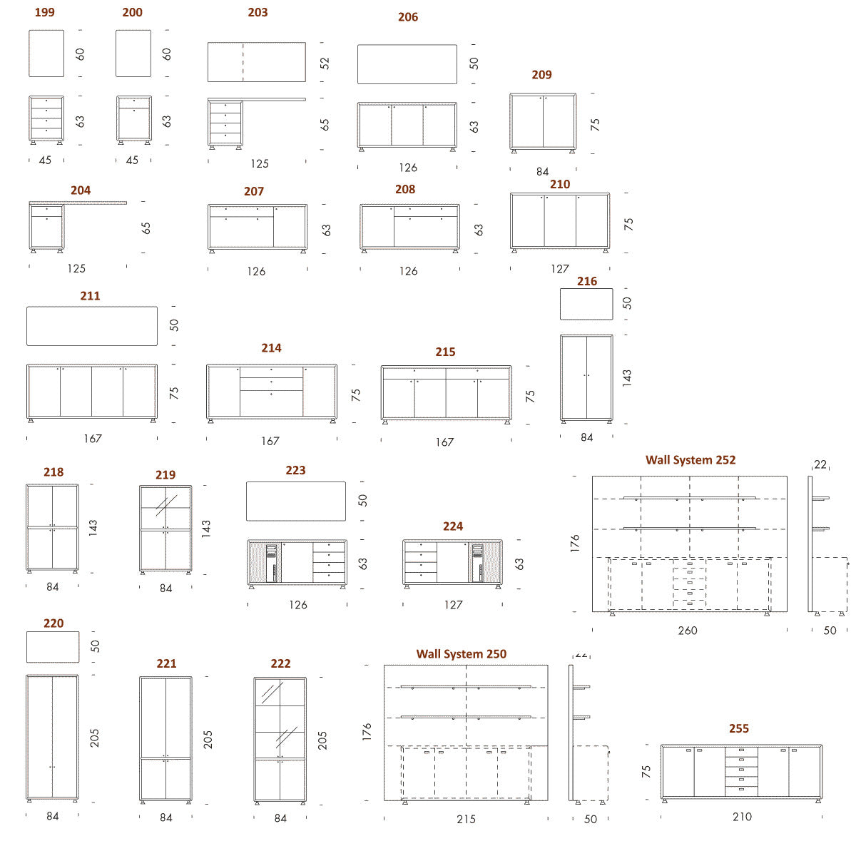 Model 215- 65.7" x 19.7' x 29.1 " with 4 Doors plus 2 drawers
