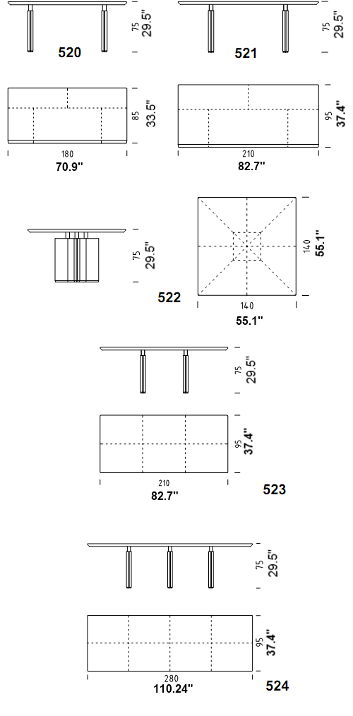 Our standard version is 33.5" x 70.9" with leather top and bases, cable management system 542 which includes 2 satin metal cable ducts and 2 outlets for data and electrical connections.