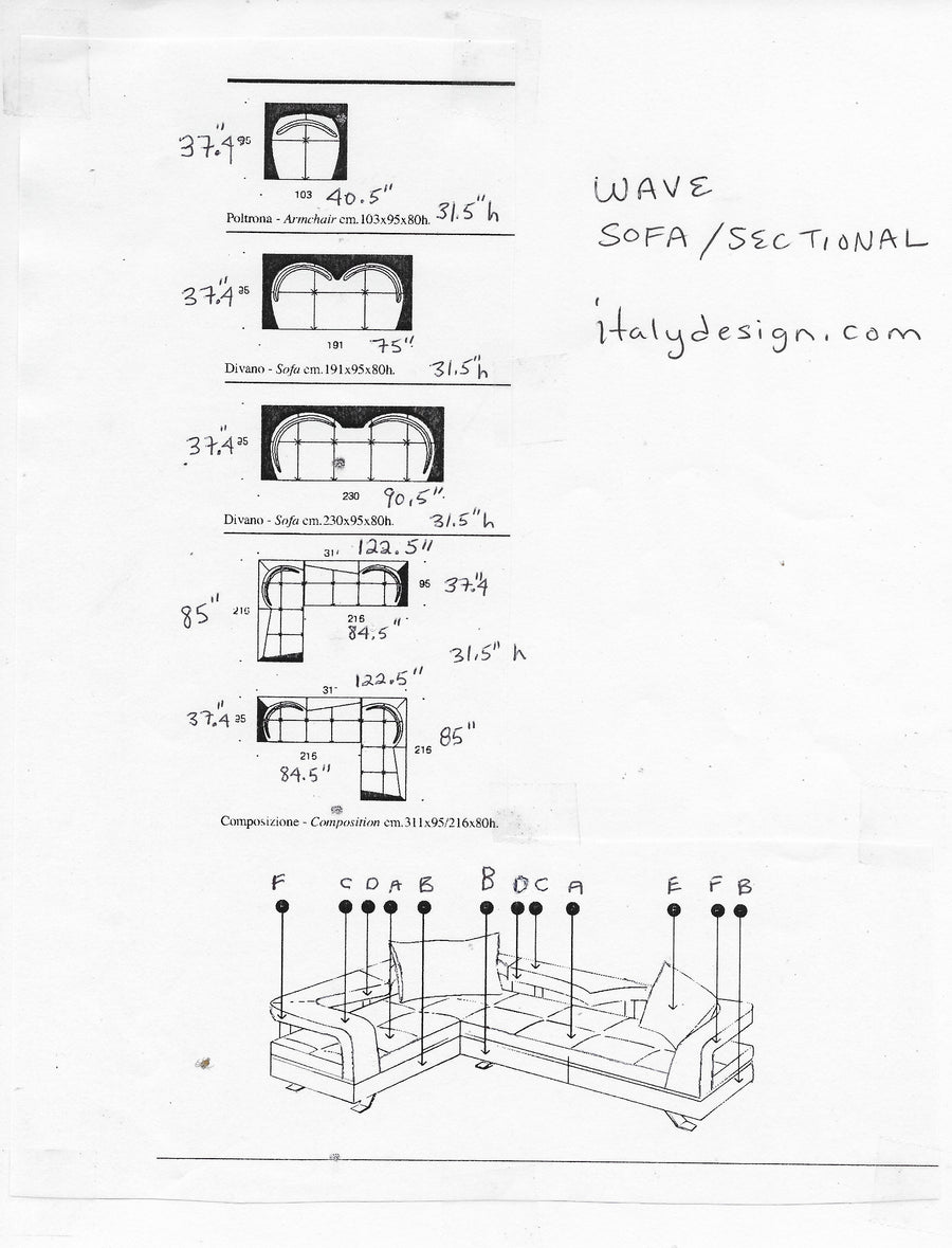 The Wave is a highly original sofa that appeals to lovers of unique design. It furnishes a room with a distinctly international style combining modern geometric shapes with artistic flair. Multiple curves and nooks in the backrest provide intimate seating niches. Plush black feather filled pillows cradle one's back in sumptuous comfort.